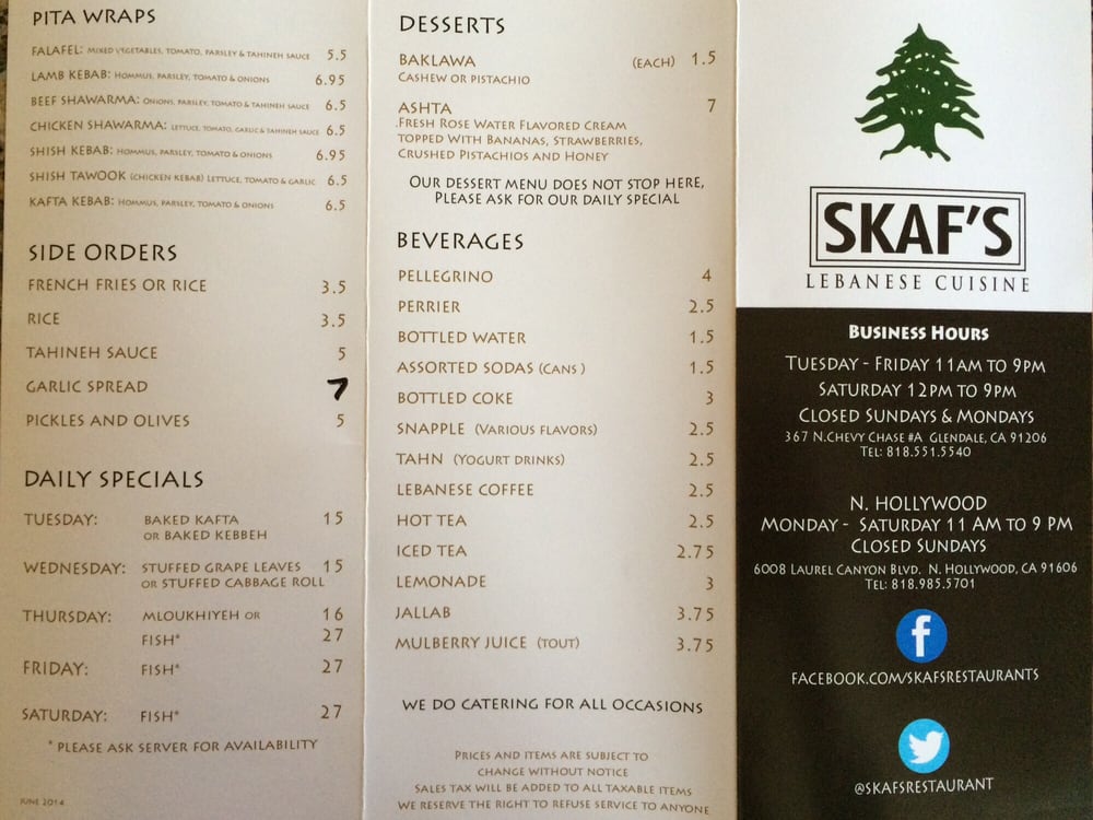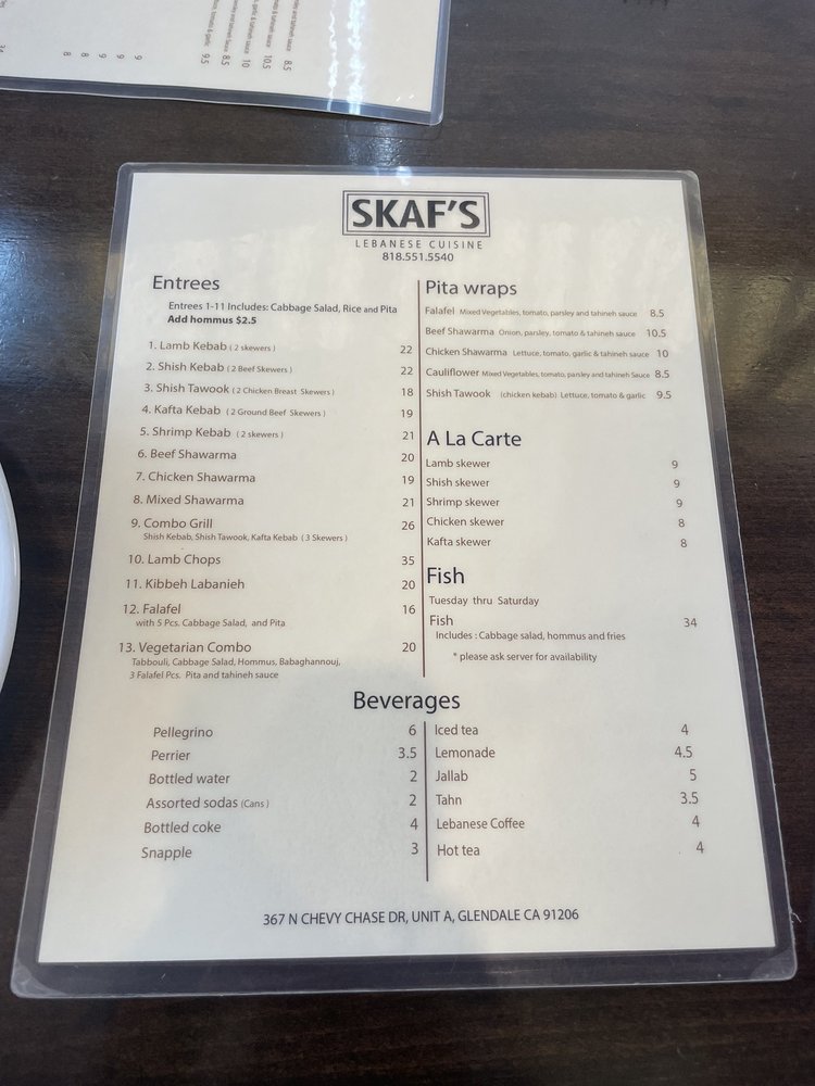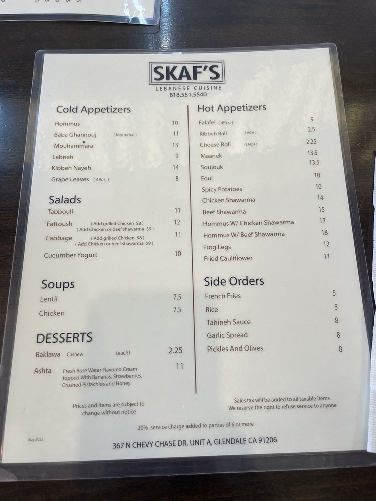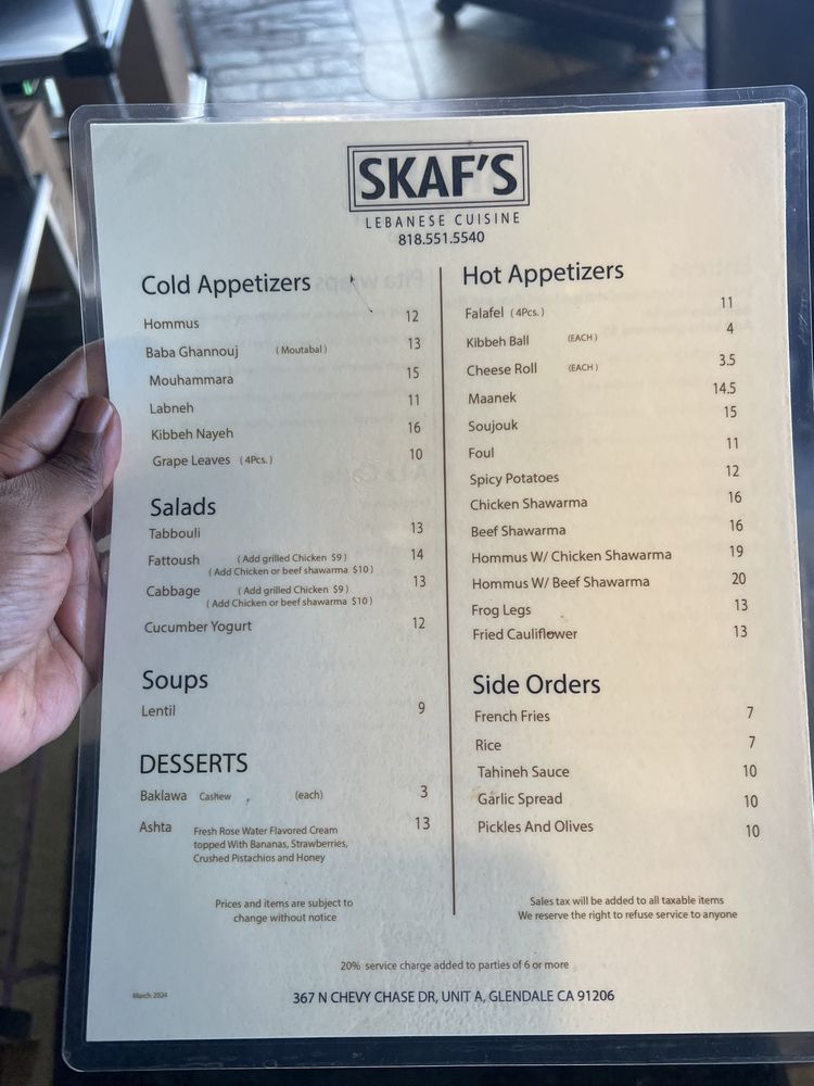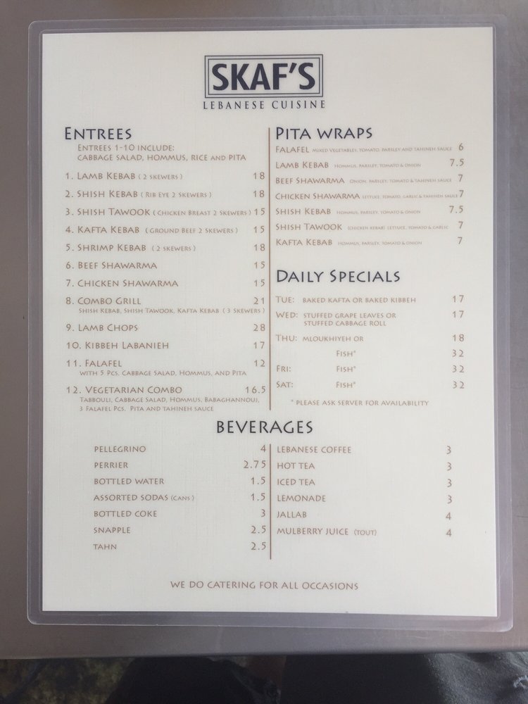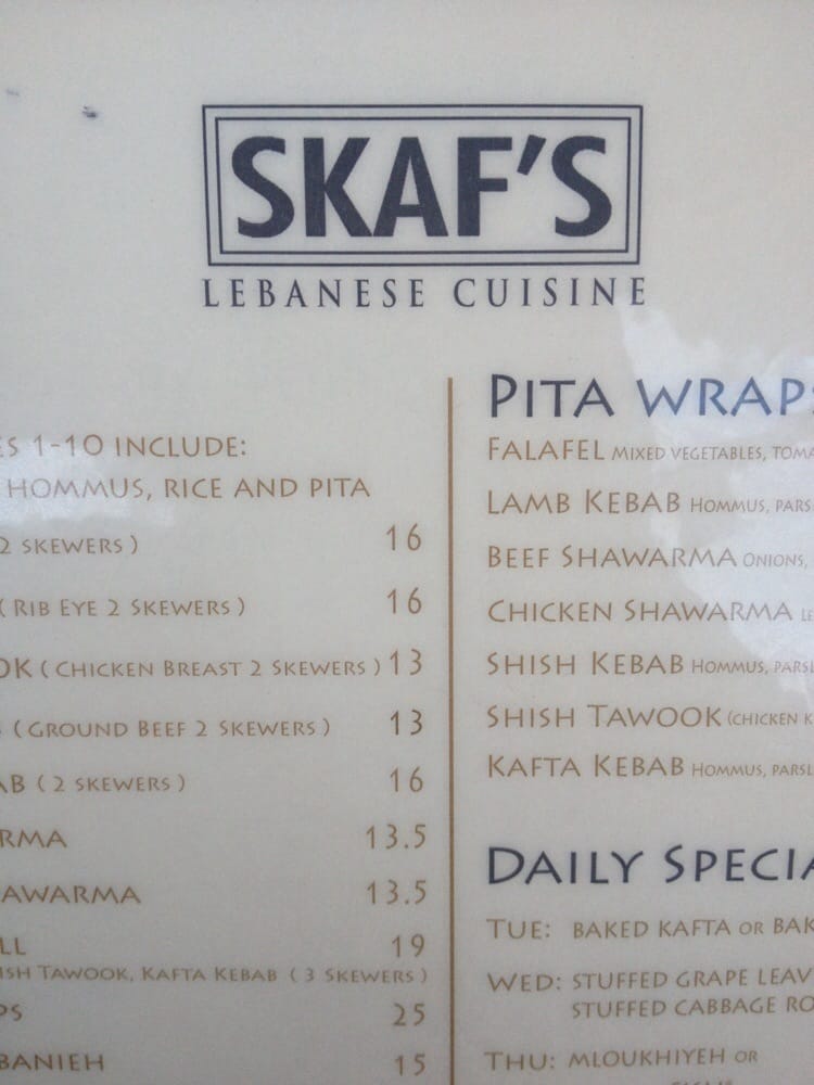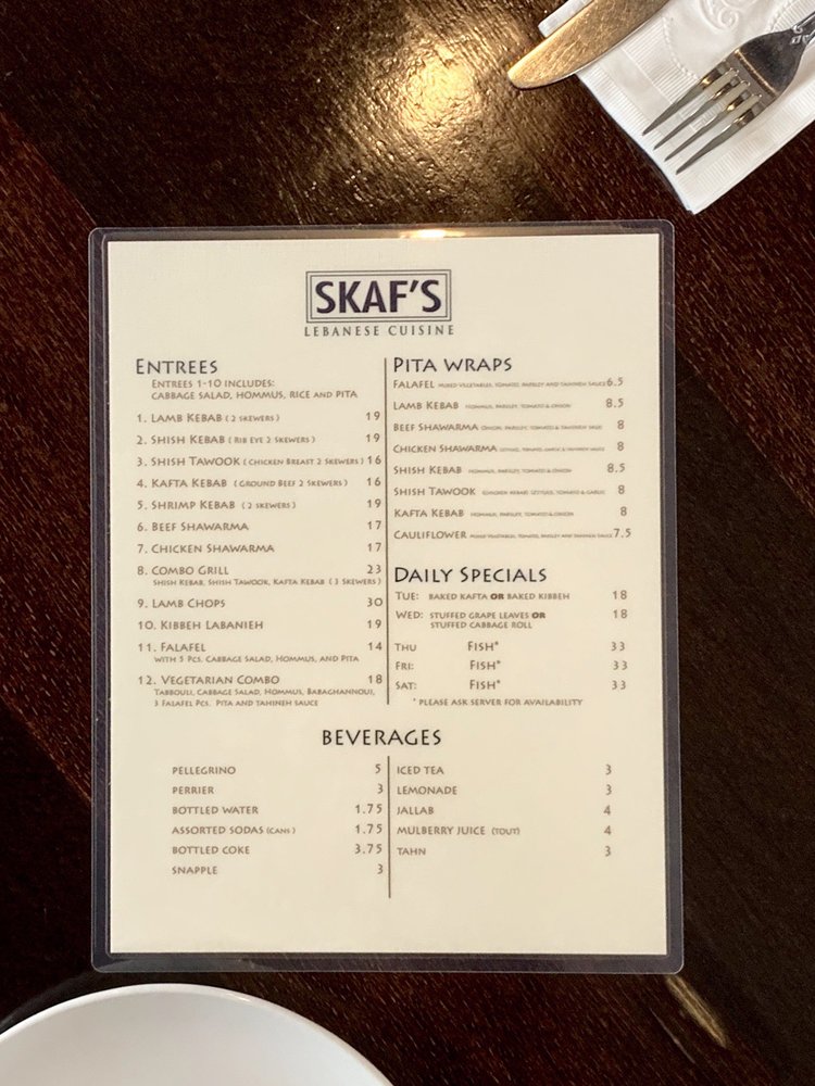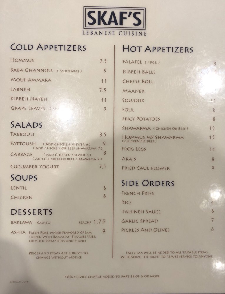 Skaf’s Lebanese Cuisine Menu (Update 2025)